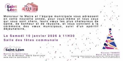 Vœux municipaux, le Samedi 10 Janvier 2026, 11H30 Salle des fêtes