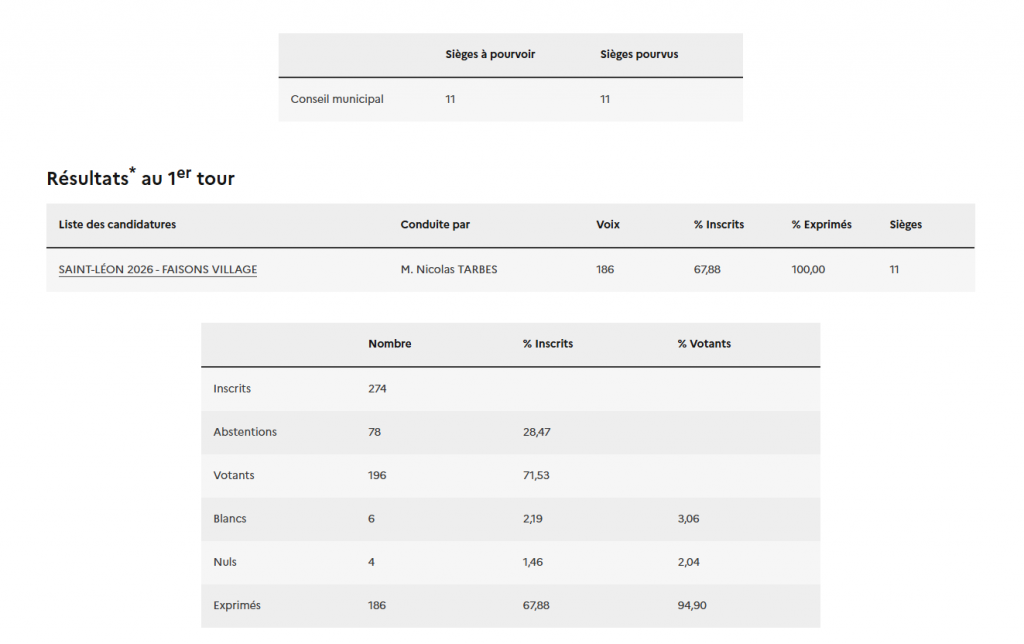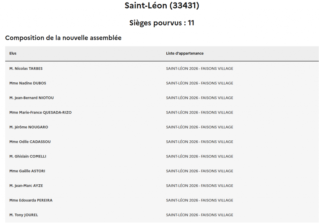 Composition du bureau unique de vote de la commune de Saint-Léon :