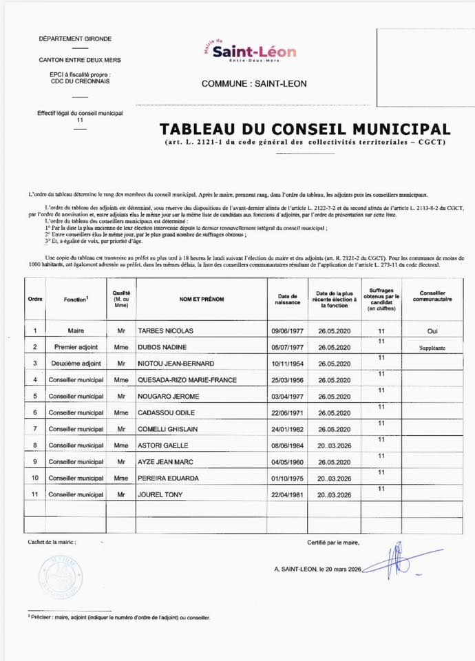 À l’issue de cette séance d’installation, Monsieur Nicolas TARBES a été élu Maire de la commune et délégué communautaire. Madame Nadine DUBOS a été désignée Première adjointe, et Monsieur Jean-Bernard NIOTOU, Deuxième adjoint.